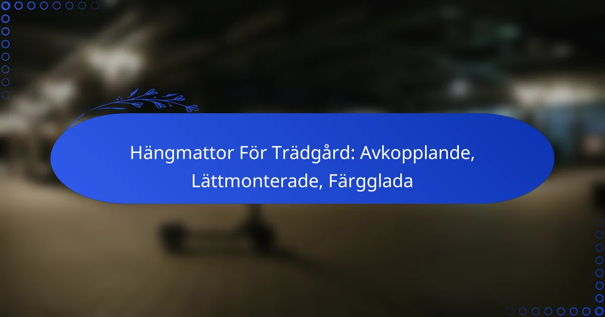Hängmattor för trädgård erbjuder en perfekt plats för avkoppling och njutning utomhus. Dessa färgglada och lättmonterade alternativ tillför både stil och komfort till din trädgård, vilket gör dem till ett populärt val för många. Genom att välja rätt hängmatta kan du skapa en oas av lugn i din utomhusmiljö.