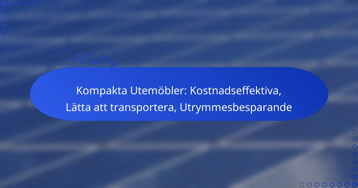 Kompakta utemöbler erbjuder en praktisk lösning för dem som vill maximera användningen av begränsade ytor, såsom balkonger och små trädgårdar. Dessa möbler är lätta att transportera och förvara, vilket gör dem kostnadseffektiva och mångsidiga för både privatpersoner och företag. Genom att välja kompakta alternativ kan du enkelt hantera utrymme och funktionalitet i utomhusmiljöer.