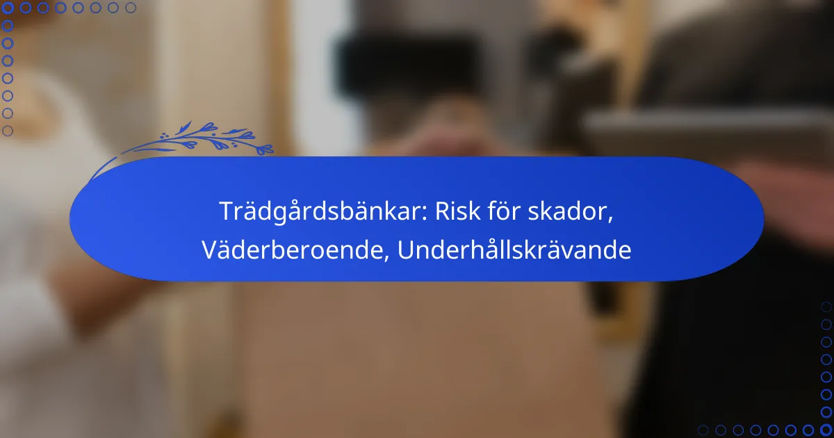 Trädgårdsbänkar kan medföra flera risker, inklusive fysiska skador, väderrelaterade problem och behov av underhåll. Vädret påverkar bänkarnas hållbarhet och livslängd, vilket gör det viktigt att vara medveten om faktorer som regn, UV-strålning och temperaturvariationer. För att säkerställa både säkerhet och långvarig funktion krävs regelbundet underhåll och inspektioner.