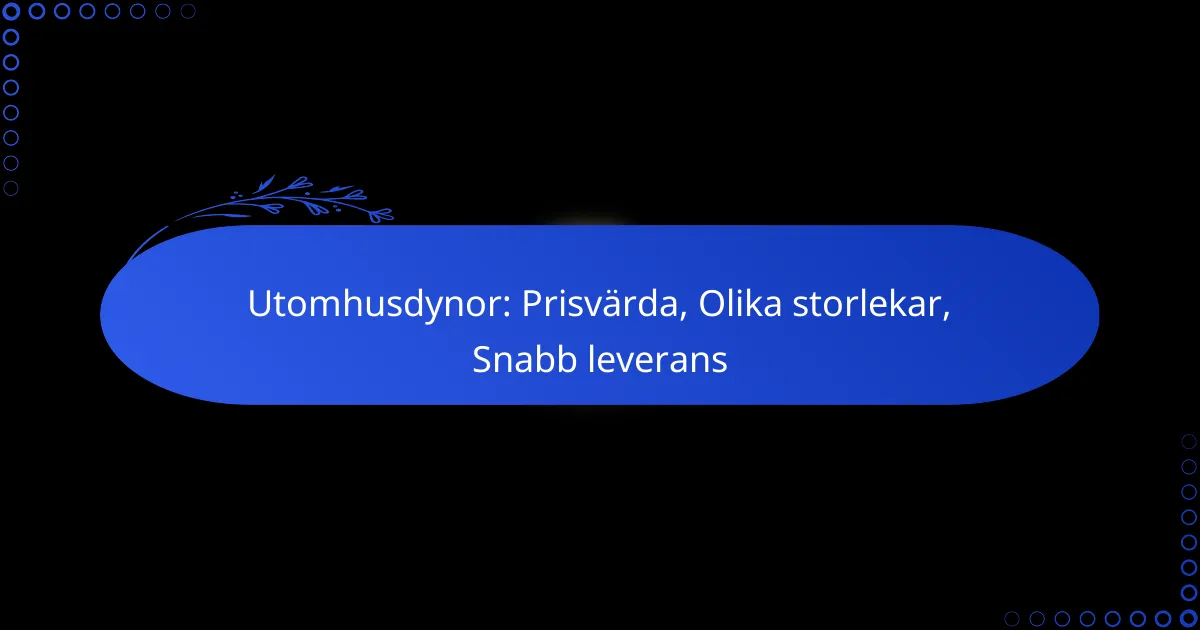 Utomhusdynor är perfekta för att öka komforten på dina utemöbler och förlänga din tid utomhus. Med ett brett utbud av storlekar och prisvärda alternativ kan du enkelt hitta dynor som passar både din stil och budget. Dessutom erbjuder många återförsäljare snabb leverans, så att du snabbt kan njuta av din förbättrade utomhusmiljö.