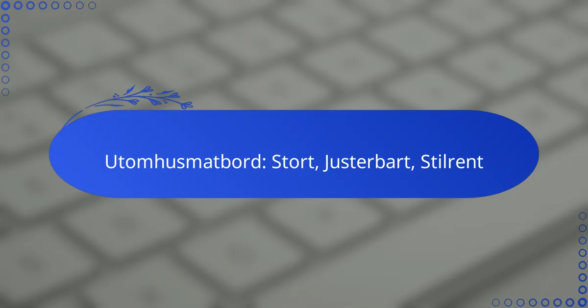 Ett utomhusmatbord är en viktig möbel för att njuta av måltider utomhus, och det finns många alternativ att välja mellan, inklusive stora, justerbara och stilrena modeller. När du väljer ett bord är det viktigt att tänka på dimensioner, justerbarhet och hållbarhet för att passa dina behov och smak. Ett justerbart bord ger extra flexibilitet, vilket gör det perfekt för både intima middagar och större sammankomster.