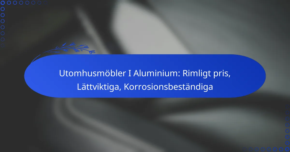 För att välja rätt utomhusmöbler i aluminium bör du fokusera på kvalitet, design och hur de passar med dina befintliga möbler. Aluminium är lättviktigt och korrosionsbeständigt, vilket gör det till ett utmärkt val för utomhusbruk.